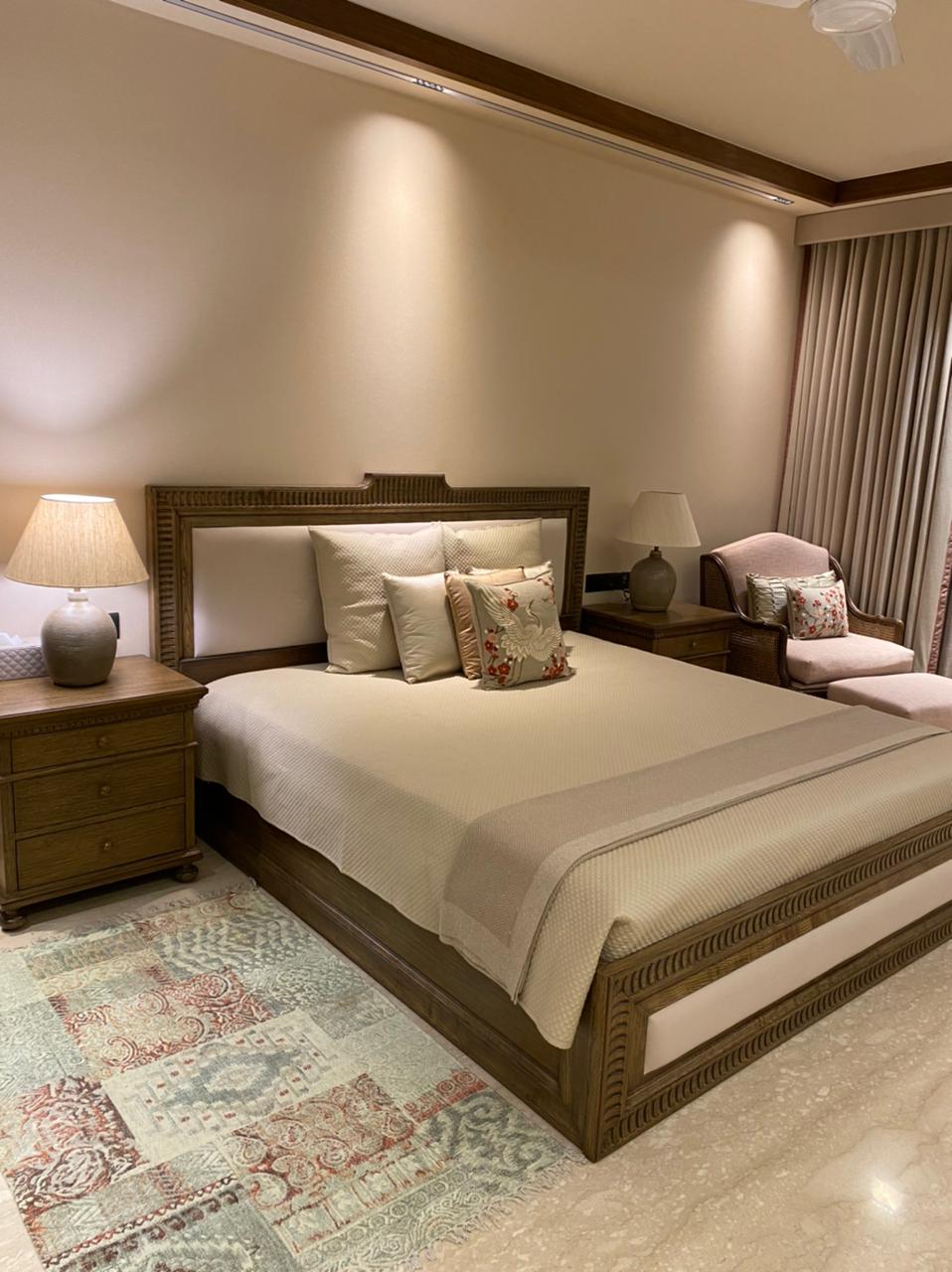 An ultra-luxury multi-generational bungalow blending classical elegance with modern comfort through rich wood paneling, marble finishes, and bespoke furniture.